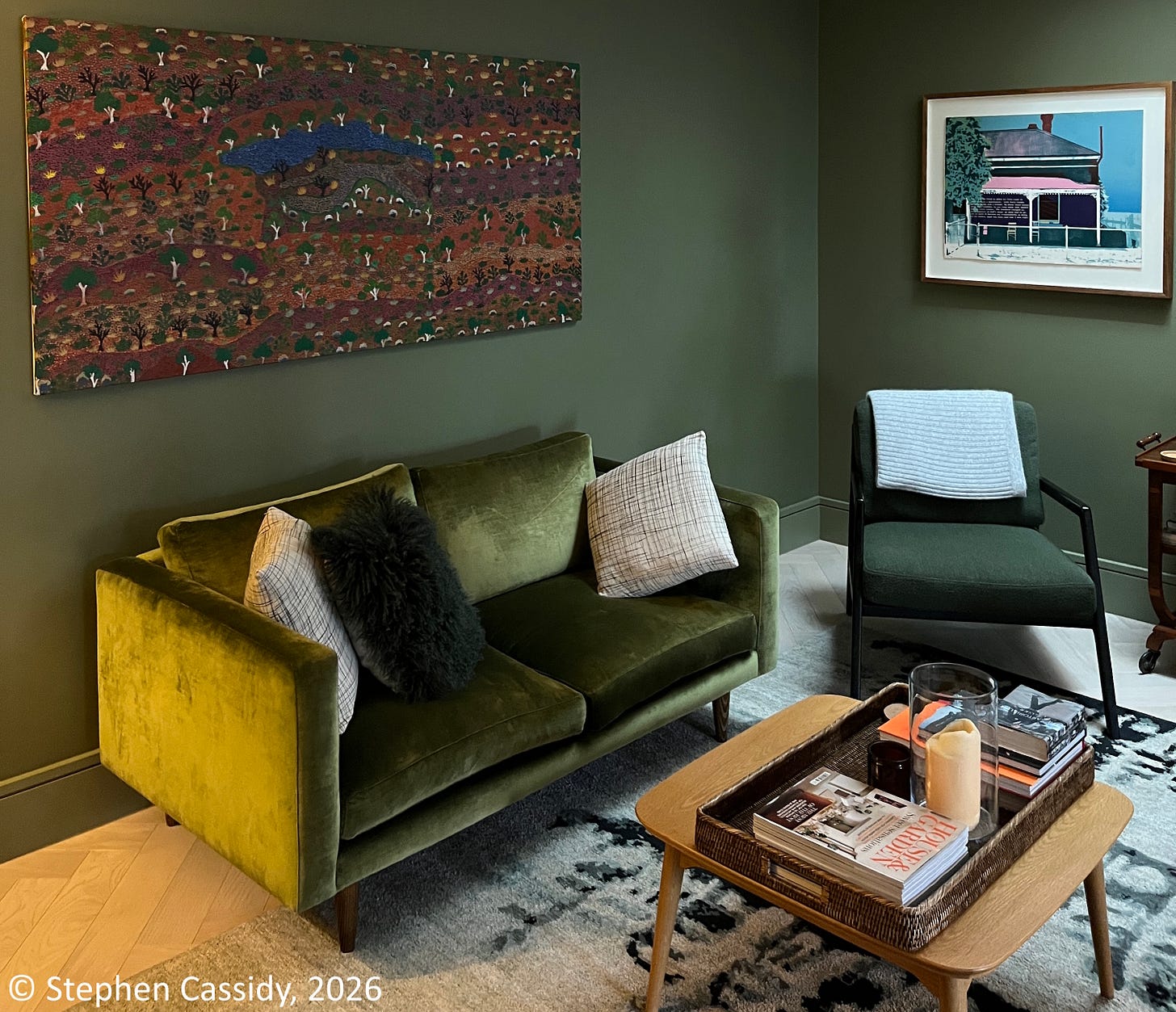 In an episode of Grand Designs, the television program about striking houses, someone commented that inhabiting a modernist house would be like living in an art gallery. I thought ‘I’d like to live in an art gallery’. Now we were back home, it was time to return to furnishing our home, with it’s mixture, as I describe it, of mid-century modern and French Empire.